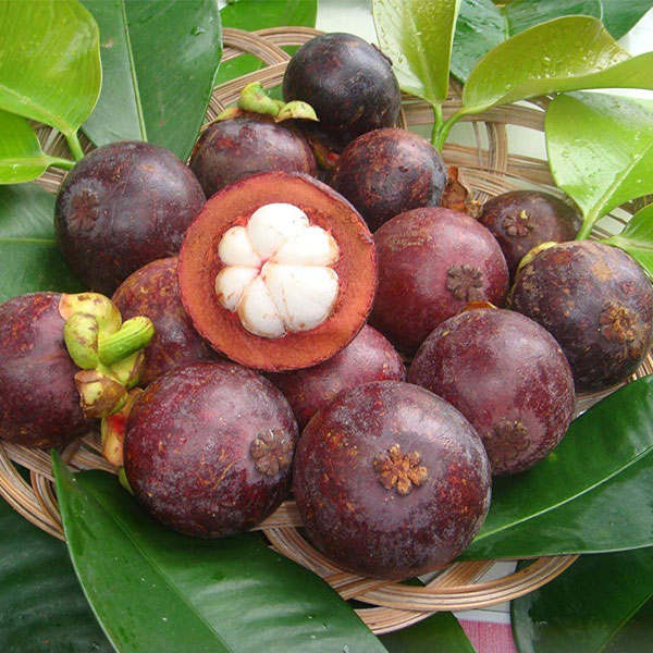 Mangosteen (Garcinia mangostana) is an exotic, tropical fruit with a slightly sweet and sour flavor. The fruit is sometimes referred to as purple mangosteen because of the deep purple color its rind develops when ripe
